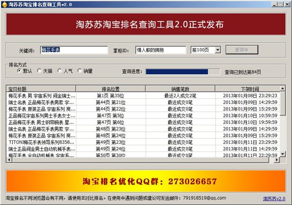 淘苏苏淘宝排名查询软件v2.0在1.0版本基础上增加了人气排名查询,天猫排名查询,销量排名查询等功能。