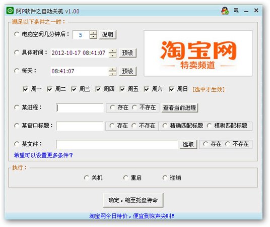 阿P软件之自动关机软件 1.22 绿色版 【软件介绍】
