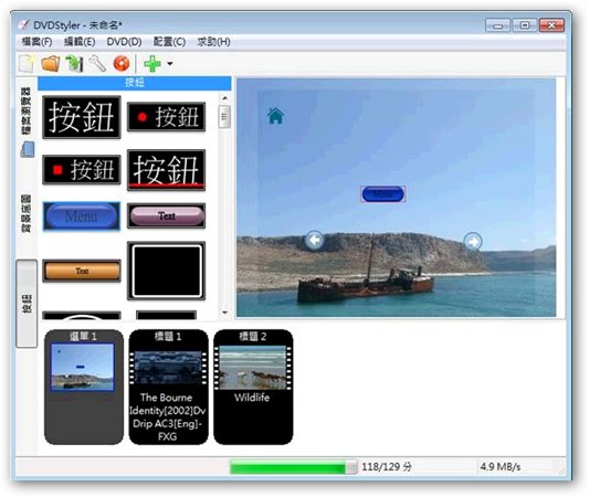 DVD刻录软件(DVStyler) 2.3 中文版 想要制作刻录DVD光碟,可以来使用DVDStyler这套免费的DVD刻录软体,可以直接将VOB档转成含光碟选单的DVD光碟或ISO光碟映像档,还内建影片格式 转档功能,可以一次加入AVI 、MOV、MP4、MPEG、OGG、WMV等影片格式 ,便可完成选单、转档及烧录等动作,相当方便,且有繁体中文介面,可在Windows、Linux及Mac OS x等作业系统来使用。