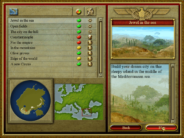 在《文明城市罗马》中,玩家将重建罗马帝国的辉煌,以一个缩微的景观来表现当年繁华的文明城市:罗马。城市中的建筑物达到了上百种,有角斗士学校、圆形剧场、杂技场、军事堡垒、武器制造厂等等。当年罗马帝国兴盛时期的罗马人的生活,将在你的电脑中真实展现。