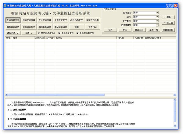 智创网页木马文件监控助手 V1.70 官方最新版 智创网页木马文件监控助手对服务器中指定网站的 asp/php/aspx… 文件进行实时监控,扫描是否包含木马或可疑文件。若监控到已知的木马文件创建或写入,能自动对此文件进行改名拦截处理,使其作废无法运行。若监控到可疑文件时,写入监控日志,由服务器管理员人工处理。