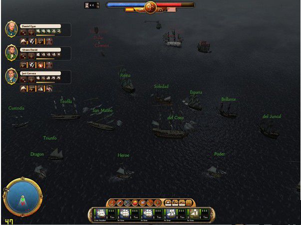 游戏刚开始,舰队出现在大西洋中间,只有1艘战舰和2艘贸易舰,你现在需要做的就是建立新的殖民地,并管理殖民地的资源、生产、军事、外交以及各种能让他们发展成一个完整帝国的东西。随着游戏的进行,会有系统的邮件和任务发来,邮件会提示你接下来的发展,任务则需要在规定时间内完成。本作的背景主要是在海上,水波,倒影的都有,也有战争迷雾,但是缺少了大海上那种令人生畏的恶劣天气变化及其带来的诸多影响。船只行驶在“浩瀚”的大海上,总觉得太太平静了,进入战斗场景,天气也是被忽略了,只是被作为一种点缀,只有风向会影响到船只的行进。