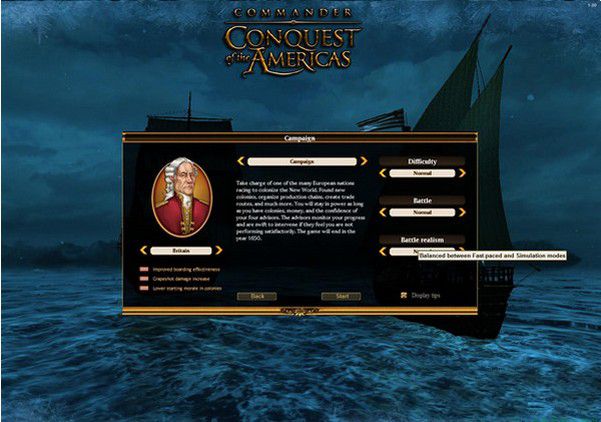 指挥官征服美洲结合了交易和策略游戏的元素,需要玩家扮演一支欧洲军队的指挥官,前去征服新大陆。玩家要从欧洲7个不同的派系中选择,负责建立新的殖民地,并管理殖民地的资源、生产、军事以及各种能让他们发展成一个完整帝国的东西。玩家可以在RTS操作风格下控制船只,或者直接控制舰队与敌国和嗜血的海盗交战,这些都将会在高度细节化的战术层面上进行。