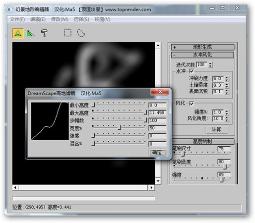幻景大师DreamScape for 3dsmax 2011/2012 2.5F 简体中文版 DreamScape又称幻景大师,是3dsmax下最为强大的地形编辑器,可生成陆地山川、江海河流、日月云天,内置相关材质及贴图,支持动画。是室外场景及自然风光设计不可缺少的插件。