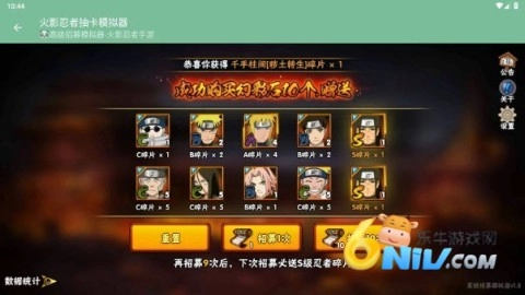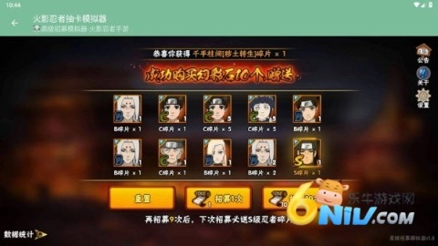 2、通过模拟器,你能够一次性进行10次招募,收集各类不同的忍者碎片,以此解锁全新角色。