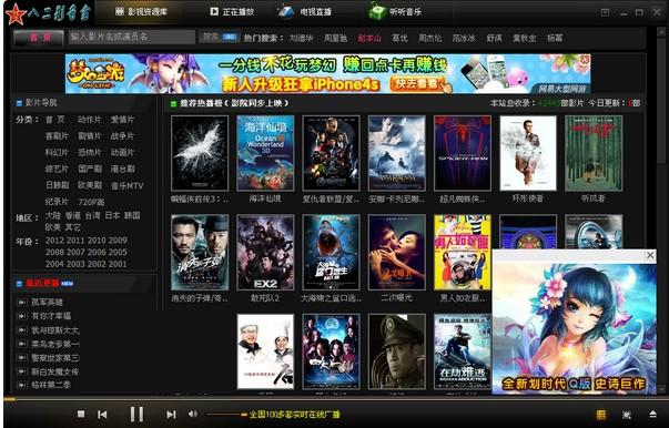 八二影音盒下载 V5.0 免费版 八二影音盒是一款基于准视频点播 (Qvod5) 内核的、多功能、个性化的全能媒体播放软件。基本实现播放零缓冲,八二影音盒集成了全新播放引擎;具有的资源占用低、操作简捷、运行效率高。支持Rmvb、Wmv、Asf、Avi、Mpg、Mp4、3GP等多种媒体格式,独创的网络即时流接收播放技术;真正百万部海量内容,聚合互联网电影、电视剧、动漫、综艺节目、电视直播,在线音乐。