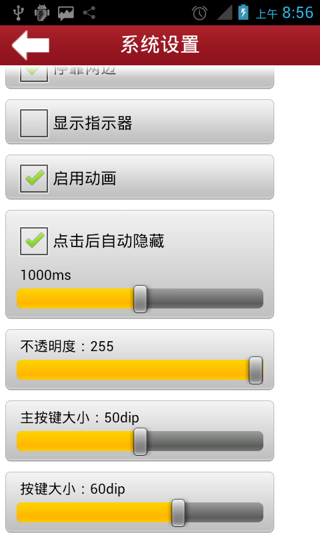 4、电源虚拟键等等快捷键,与实体键功能相同,就是说,单按一下电源键关屏、长按打开重启手机菜单