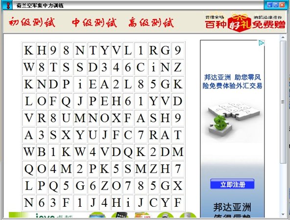 注意力训练软件测试时间为30秒,规则为数出指定的字母表中某一个或几个字母的词数,就这么简单,然而每次都能成功的人很少哦。。