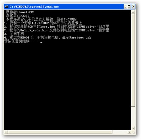 没OFF的机子,会先加锁,最后解锁,解锁需要“Unlock_code.bin”文件,但我估计一般人用网上一键解锁的,不知会不会有这个文件,如果没有,那请用网上一键解锁办法,如果不能解锁,请参考,点击进入“真正一键解锁工具”需要刷ROM的话,请将你刷的ROM里的BOOT.IMG文件放置在,下载附件解压后的目录里,一键升级HBOOT过程后会同时刷入你的BOOT文件;(OFF机子如果刷我的ROM,不用考虑这一步,我的会刷机时同时刷入boot)