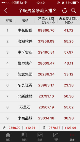 5、高频计算的资金流向、丰富的行情指标助力股市冲浪。