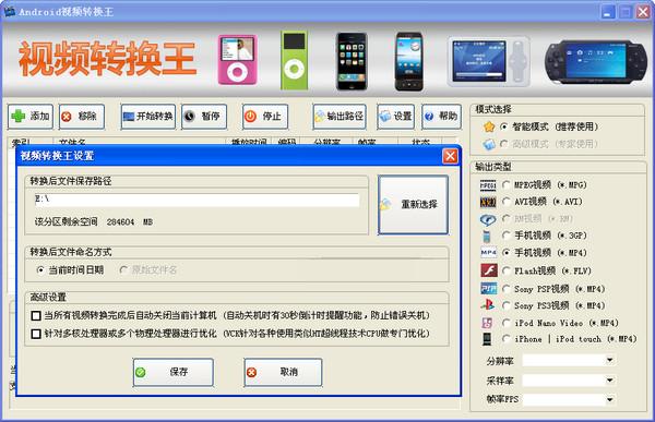 可自适应PSP、iPhone、各种智能手机、MP4、视频MP3等移动设备的视频转换。