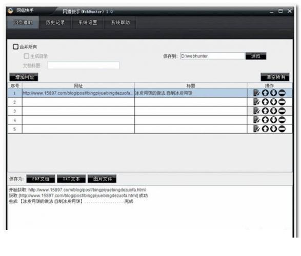 WebHunter(网猎快手) 1.1 绿色版 网猎快手(WebHunter) 是一款快速智能保存网页正文的免费应用软件,支持网页转PDF,网页转文本TXT,网页转图片等功能,在实现网页HTML转PDF,TXT或图片时,可以快速准确的提取网页正文,同时过滤网页广告等无用内容。