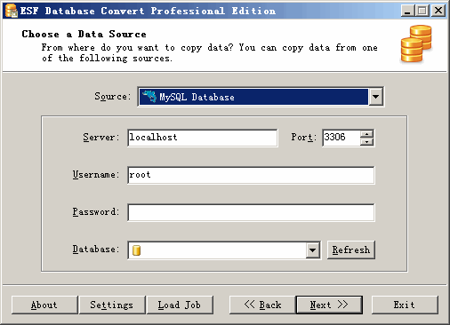 数据库移行工具ESF Database Convert灰常牛叉的数据移行工具,支持Oracle, MySQL, SQL Server, PostgreSQL, IBM DB2, IBM Informix, InterSystems Caché, Teradata, Visual Foxpro, SQLite, FireBird, InterBase, Microsoft Access, Microsoft Excel, Paradox, Lotus, dBase, CSV/Text 数据库之间数据移行工具