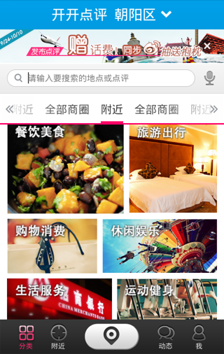2.4新版升级日志1.探索频道改为”附近”频道,直接显示附近点评列表;