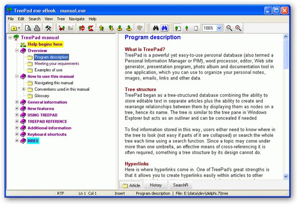 要求:装有 TreePad 绿色版 而且用treepad制作了树状的资料,exe-eBook Creator就能根据这些资料,做成电子书