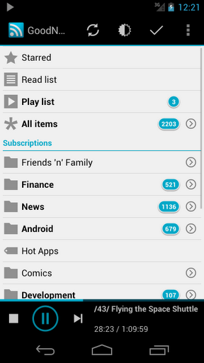 真正是一个新闻阅读器(RSS/ATOM)和音频播客播放器与着名的谷歌阅读器完全同步。古德纽斯拥有现代化的用户界面,它提供了大量的专业和独特的新闻阅读器的功能,包括离线支持(包括图像),自动推送的局部变化,阅读的文章列表,订阅分组列表,标识出上滚动,自动关闭视图,音量键导航,多了不少。超过50个选项,可让您完全按照您的需求定制好的消息。
