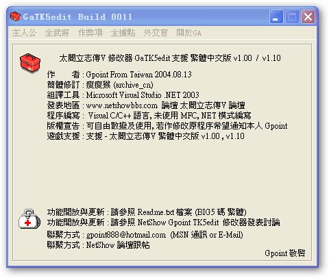 一款超全面的太阁立志传5修改器,你能修改包括游戏中出现的任何属性,如主人公属性,全武将属性等等。该修改器需要先运行游戏才可使用。