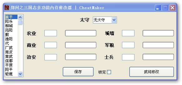 郑问之三国志全能版修改器是一款功能强大的郑问之三国志修改器,能帮助用户对农业,城墙,商业,军粮,治安,士兵数等游戏数据进行修改。