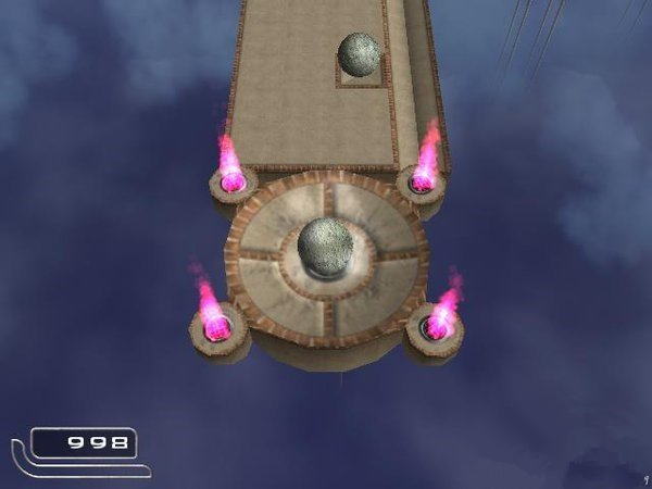 第四关,u形木板要左右晃一下,才能过去.(木球摩擦大),在接下来的拱形木板上,后面的分数吃不到就不要吃了,以后大家水平够了,肯定能吃到.走过几块方格形状的地板,来到存档点.注意,再向前走,会有12个石球落下,小心不要被砸下去.过了之后,是下坡,控制速度和方向,躲开木板上的洞,走上左面的木板,上面有4个石球,撞下第一个,然后紧贴它向下冲,可以通过.