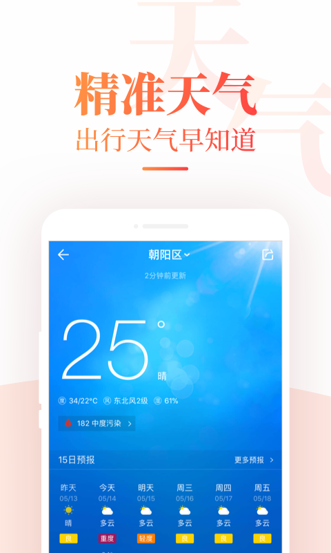 3、天气:天气动态、未来一周天气、PM2.5污染提示;