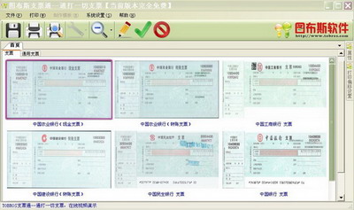 系统默认集成各大行2012年最新版支票。