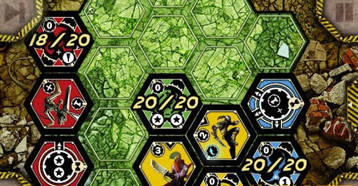末日浩劫安卓版游戏操作介绍:末日浩劫安卓版游戏上手比较简单,每个种族拥有包括HQ(总部)在内的35个六边形板块,末日浩劫安卓版游戏的最终目标就是保存己方总部的前提下,尽可能的摧毁敌方总部(总部拥有20点生命值)。【游戏特色】