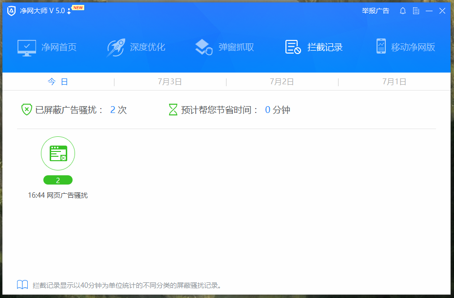 广告拦截大师:一款免费产品,专注于客户端软件广告弹窗拦截!Adsafe净网大师:集不良网站屏蔽、视频骚扰过滤等功能为一体!