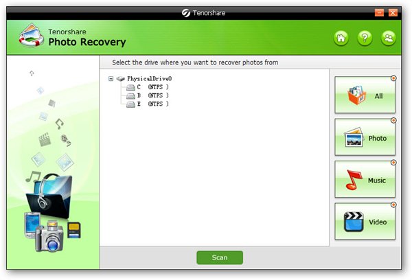 照片恢复软件(Tenorshare Photo Recovery) 2.0 特别版 Tenorshare Photo Recovery是一款功能强大的照片恢复软件,该软件可以恢复被误删的数码照片、音乐、视频等文件。