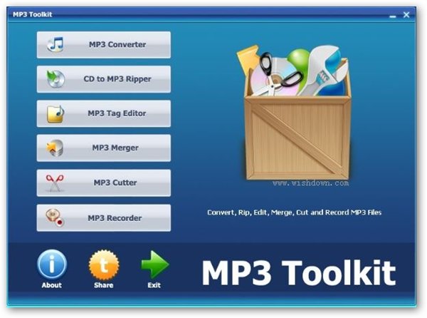 您可以通过该音频处理软件转换适用移动设备的音频,制作铃声,修改标签信息,翻录音频CD ,录制声音或合并多个音频为一个完整的MP3文件。除了标准的MP3格式外,MP3 Toolkit支持最流行的音频和视频格式,如WMA, WMV, MP4, WAV, OGG, FLV, MOV, M4P, M4A等,也支持高品质的FLAC和APE等音频。
