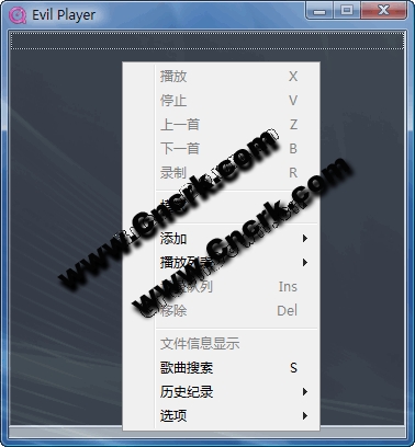 Evil Player 是一款小巧快速、强大并易用的媒体播放器!体积小、低内存占用,是大软不可比拟的。通过插件,她可以支持的格式包含:WAV, OGG, MP1, MP2, MP3, Flac, AAC, MOD, XM, IT, S3M, MTM, UMX, MO3 这些如果您对音质效果要求不是特别高,平时使用这款软件,还是比较快捷方便的!
