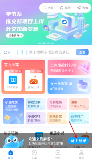 3、素材浏览:于首页的素材分类栏里,挑选短剧、小说推文等类别,进而浏览自己心仪的素材内容。
