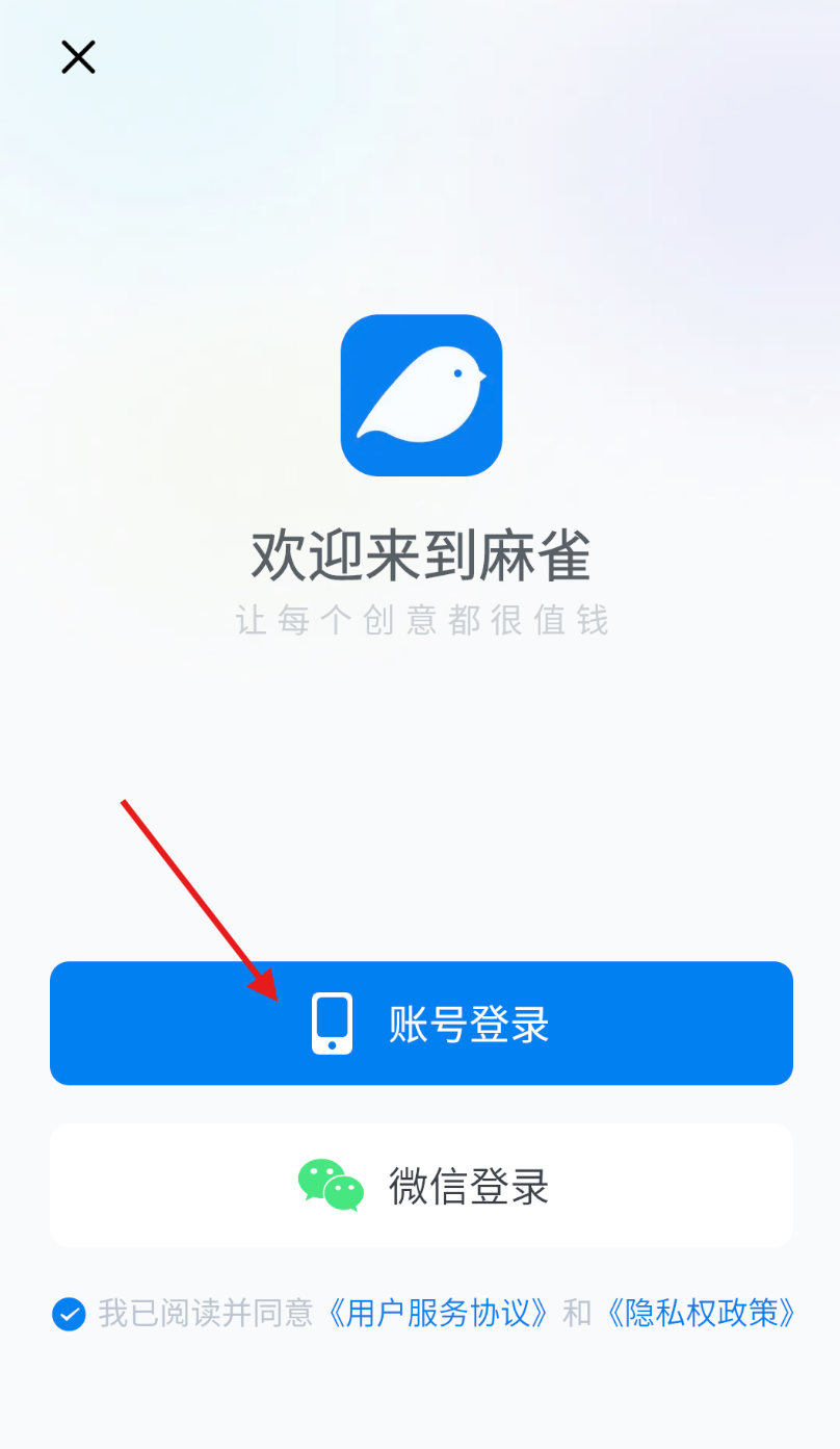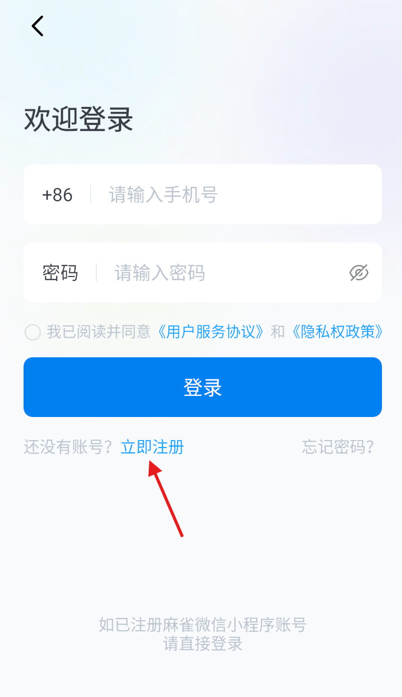 1. 开启麻雀Matrix软件,在首页点击“马上登录”按钮,从而进入登录界面。