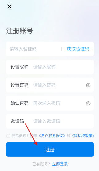 3、轻点 “立即注册” 按键,随即进入注册账号所需信息的填写界面。