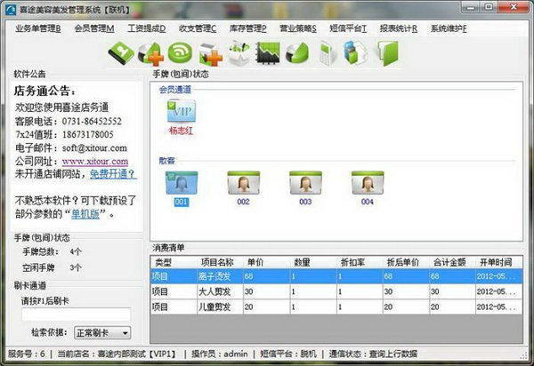 喜途美容美发管理系统 v6.7.4 安装版 喜途美容美发管理系统无需安装任何其他的数据库引擎,对客户机硬件和软件要求极低,满足美容美发店日常营业中的员工提成、活动促销、会员管理、顾客短信关怀、决策支撑等一系列美容美发店管理中的问题。