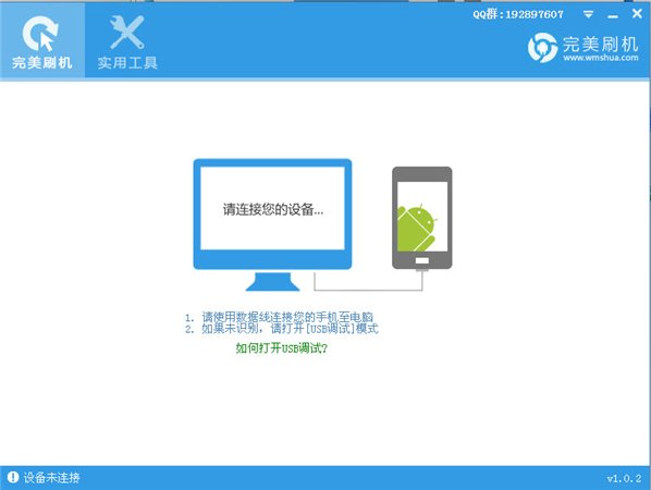 1.手机连接电脑,启动完美刷机,立刻连上手机设备。在这个过程中如果您是第一次连接设备,完美刷机会自动为您安装手机驱动。