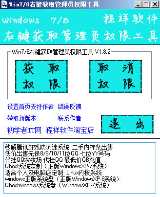 win7右键获取管理员权限工具可以快速获取管理员权限删除那些需要系统管理员权限才能够删除的文件。有些删除文件,查看文件,比如系统有些文件夹见不去,都可用此工具