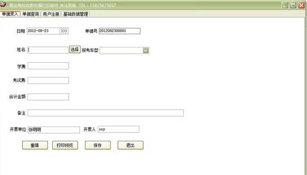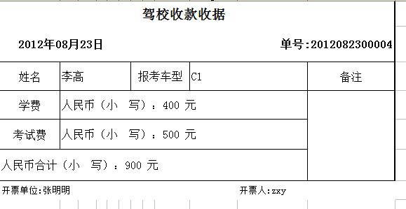 易达驾校收款收据打印软件:主要面向驾校培训学校收款收据的打印。