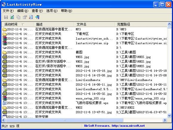 LastActivityView 直接调用系统日志,能显示以下事件的发生时间、名称、路径: