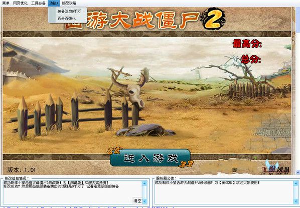 西游大战僵尸2修改器名称全称是小望西游大战僵尸2修改器豪华版,可以帮助玩家修改游戏中的金钱以及强化成功率,装备改为9千万、百分百强化,让你可以在游戏中更加的游刃有余。