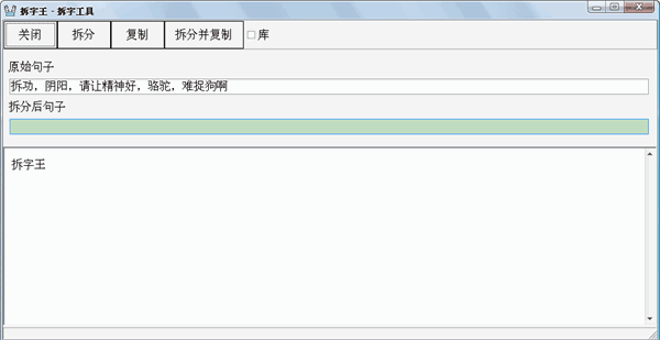 拆字王是一款论坛必备拆字工具.,比如可以把“论坛”拆分为“讠仑土云”,以避免对某些关键词的限制。同时“拆字王”还能维护拆字库,即可以修改已存在的拆字方式,新增新的拆字方式,或删除已存在的拆字方式。比如“论”,可拆分为“讠仑”、“言仑”、“言人匕”、“讠人匕”等。