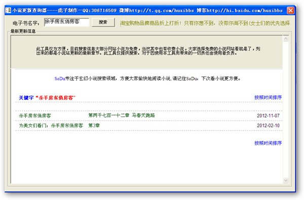 小说更新器v1.3.3版本添加自动查询功能,更新对WINXP的支持