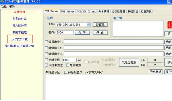 TCP-UDP服务管理下载 V3.03 中文绿色版 TCP-UDP服务管理提供了TCP Server、UDP Server、TCP/UDP Client、数据包抓取等功能