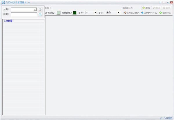 飞云txt文本管理器是绿色免安装的免费软件,可以直接在U盘里运行,添加或修改的文件都保存在软件所在文件夹下,随身携带,方便管理。