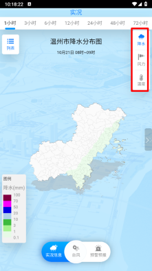 5、切换到“实况信息”页面,便能查看气温、降水、风力等信息。