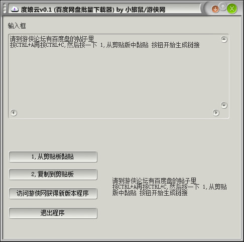 1,请到游侠论坛有百度盘的帖子里按CTRL+A再按CTRL+C,然后按一下 "1,从剪贴版中黏贴" 按钮开始生成链接