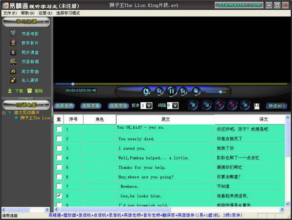 i.遇到生词时,用灵格斯词霸的屏幕取词功能,这剧本框里用鼠标一指单词即可知其词义和读音;