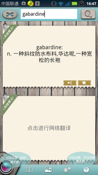 4.英译汉,汉译英:自带英汉和汉英词典,进行快捷准确的手动输入翻译与网络对照释义;