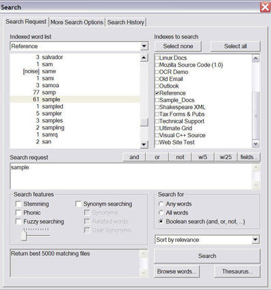 dtSearch可以在千兆字节数量级的数据源中进行搜索,包括文字处理程序、数据库、电子表格、电子邮件(包括附件)、ZIP, XML, PDF, HTML, Unicode 编码文件等。它具有包括编入索引、未编入索引、域操作和全文本等搜索选项。突出显示所有搜索到的文件;当结果为HTML, XML 和PDF文件时,显示其链接和图像。通过其内置的Web Spider工具,您可以使用其他网站资源作为即时搜索的数据源。