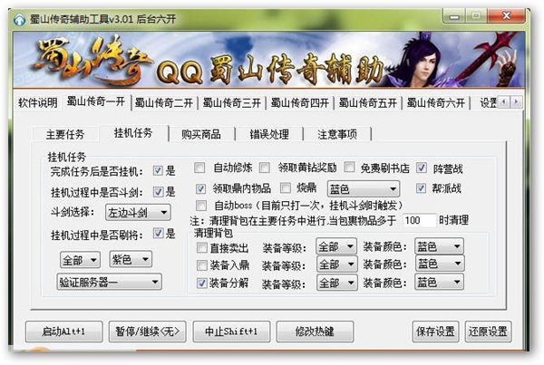 精灵蜀山传奇辅助是一款蜀山传奇辅助工具,该软件可自动boss(每个只打一次)两种触发模式,同阵营帮战,自动阵法,自动副本等。