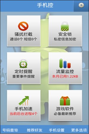 手机控是一款集结众多软件优点于一身的手机客户端。还在为没有wifi,流量每月都超;骚扰电话、短信太多,惹人心烦;手机里面图片、短信不想被人偷看;事情太多,又容易记不住等事而郁闷吗?一款手机软件,全部搞定--贴心的智能手机管家。